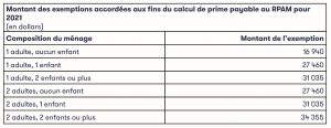 1.3 REVALORISATION DES EXEMPTIONS ACCORDÉES AUX FINS DU CALCUL DE LA PRIME PAYABLE AU RÉGIME PUBLIC D’ASSURANCE MÉDICAMENTS